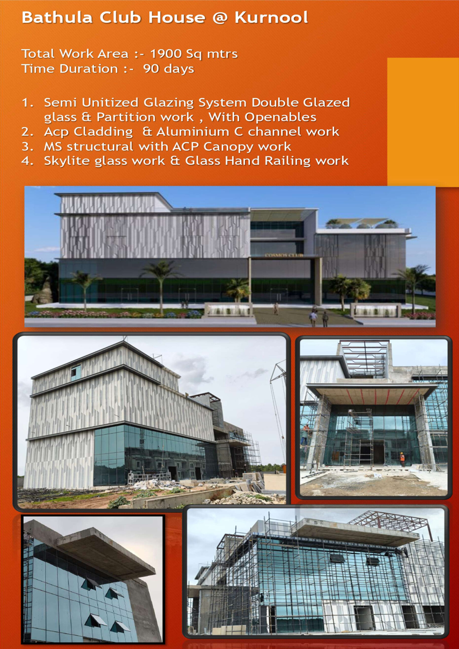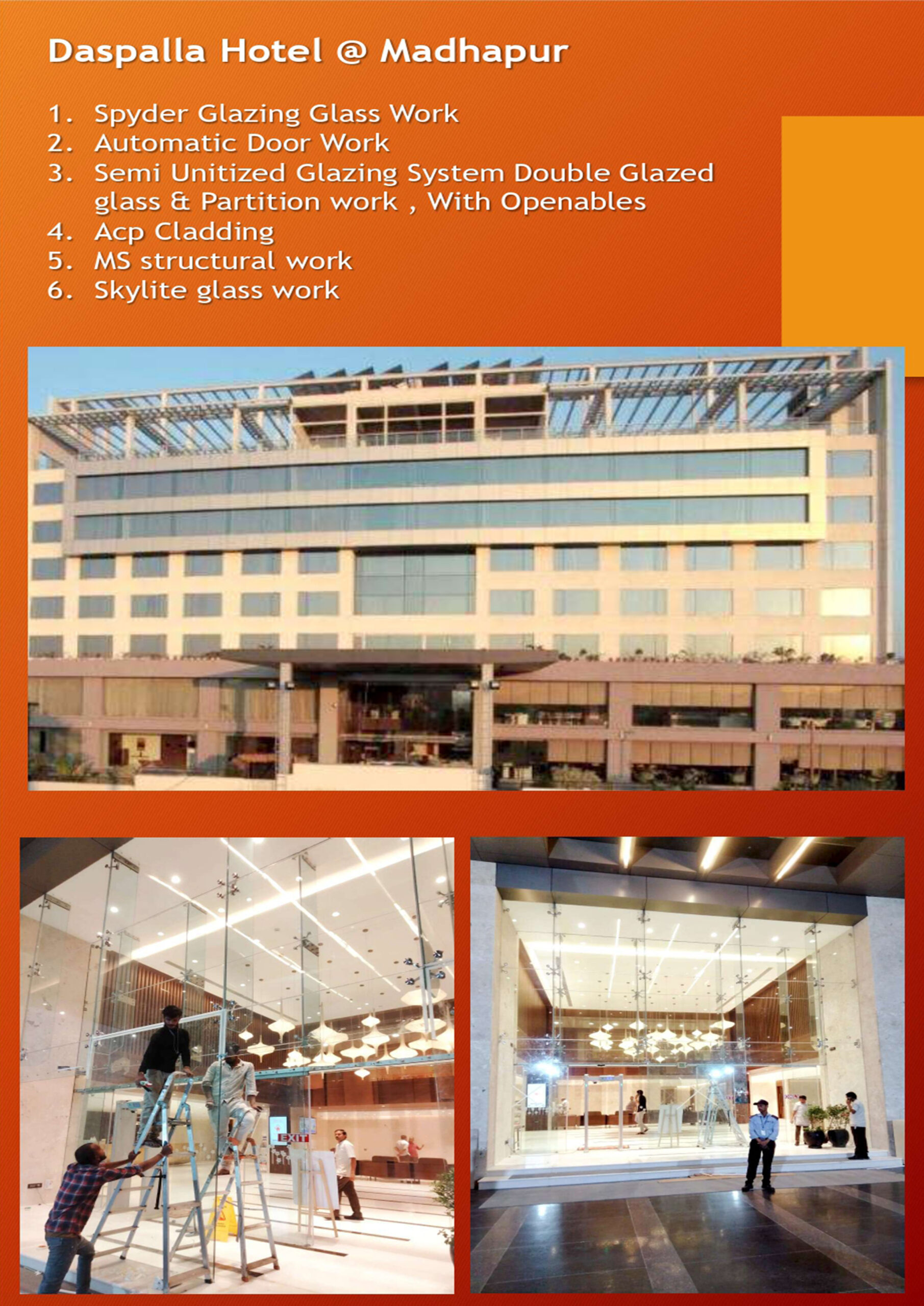Alutech Façade is holding an experience and expertise of at least a decade in Glass Glazing, Glass Elevation and Aluminum extrusion provide the best of glass elevation glazing services in the market. Our extensive design, color offer, large glass surface possible, high insulation capacity has always provided maintenance friendly and extremely reliable systems.